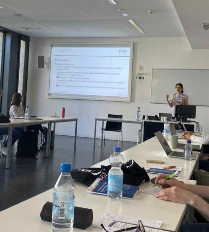 To mark the centenary of Asian Studies at Goethe University Frankfurt, the university hosted the 19th Deutschsprachiger Japanologentag (German Conference on Japanese Studies) at the Interdisciplinary Centre for East Asian Studies (IZO).The Institute of Japanese Studies at FAU was also represented: Prof. Dr. Ayaka Löschke and Fumie Iso-Haubner had the opportunity to present their ongoing research projects. Both presentations attracted considerable interest and gave rise to lively discussions with the audience. We sincerely thank all those involved for their valuable contributions.